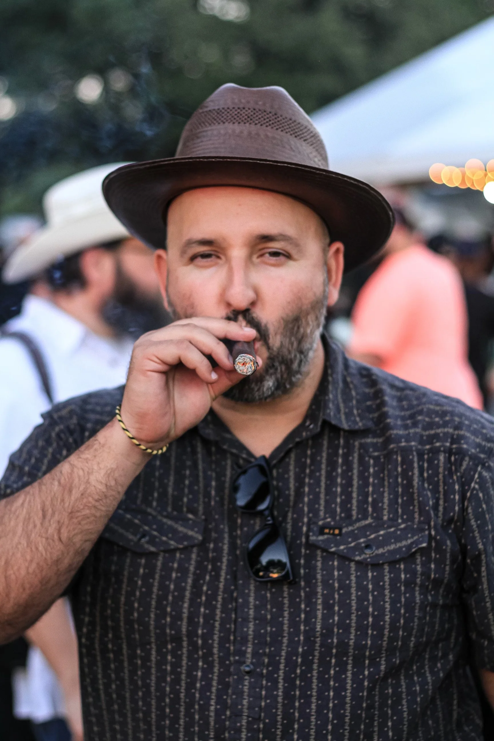 Enjoying a cigar at Drew Estate’s Dallas Barn Smoker.